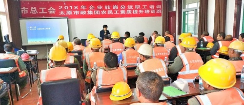 太原市政集團(tuán)作為建筑施工企業(yè),農(nóng)民工人數(shù)較多、流動(dòng)性大,已被太原市總工會(huì)選定為農(nóng)民工培訓(xùn)基地。在進(jìn)入施工旺季,工期緊、任務(wù)重,且農(nóng)民工自我保護(hù)意識(shí)差,遇到了施工安全等問(wèn)題難以及時(shí)解決。為確保培訓(xùn)內(nèi)容全覆蓋,集團(tuán)公司工會(huì)結(jié)合太原市總工會(huì)2018年企業(yè)轉(zhuǎn)崗分流職工培訓(xùn)總體規(guī)劃,根據(jù)自身施工特點(diǎn),開(kāi)展了多種形式的農(nóng)民工培訓(xùn)課程,目前參加培訓(xùn)的農(nóng)民工已達(dá)一千余人。