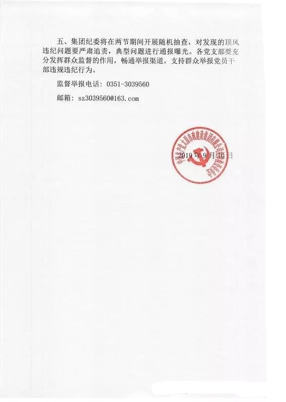 太原市政建設(shè)集團(tuán)有限公司關(guān)于嚴(yán)明“中秋、國(guó)慶”期間有關(guān)紀(jì)律要求的通知