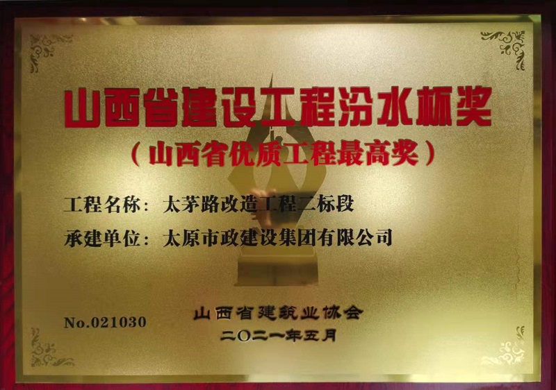近日,集團(tuán)公司承建的太茅路改造工程二標(biāo)段、臥虎山快速路建設(shè)工程一標(biāo)段、上莊街(西中環(huán)—少管所三岔口)道路改造三項(xiàng)工程喜獲山西省建筑業(yè)協(xié)會(huì)頒發(fā)的2020年度“汾水杯獎(jiǎng)”。這一獎(jiǎng)項(xiàng)是山西省建設(shè)工程質(zhì)量最高獎(jiǎng),是我省唯一與魯班獎(jiǎng)、國家優(yōu)質(zhì)工程獎(jiǎng)、安裝之星獎(jiǎng)等國家級(jí)工程建設(shè)獎(jiǎng)項(xiàng)接軌的獎(jiǎng)項(xiàng)。
