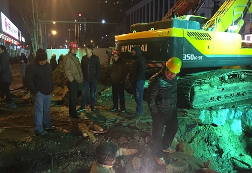 26日晚9點50分,經(jīng)過百余名搶修人員的共同努力,供水管道搶修順利完成,并對開挖路面進行了回填施工。
