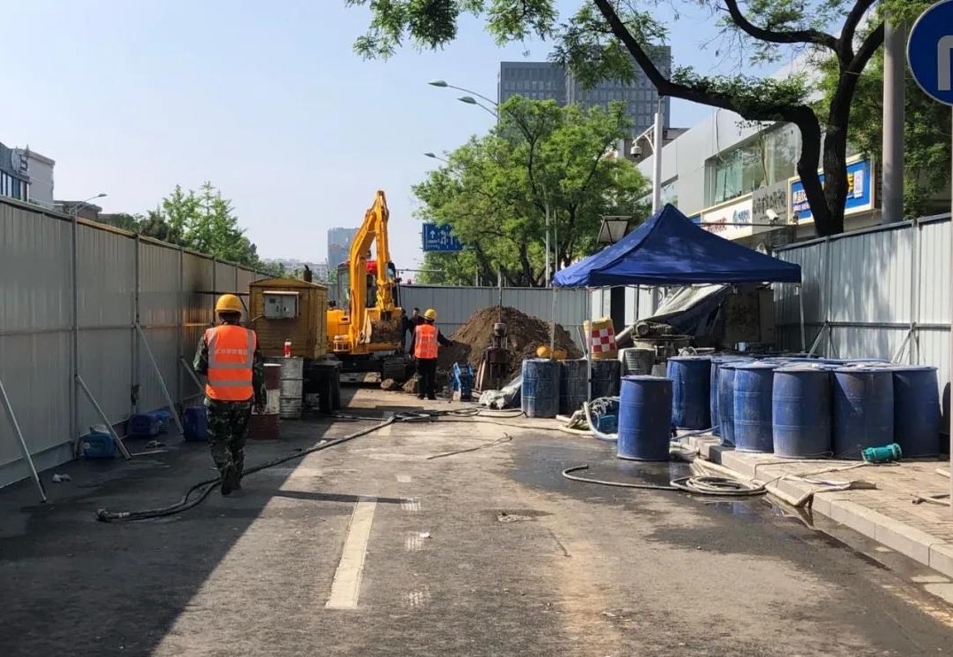 5月1日一早,三公司城南退水渠雨污分流及道路改造工程工地就響起了機(jī)械的轟鳴聲,挖掘機(jī)、注漿機(jī)、鏟車輪番上陣……項目部正在新建路段進(jìn)行污水接入井的注漿和支護(hù)工作,由于該區(qū)域地下土質(zhì)為液陷土,透水性較強(qiáng),易下陷,項目部經(jīng)過仔細(xì)研究后,決定采用二重管雙液注漿法對污水接入井進(jìn)行注漿。相較于傳統(tǒng)注漿工法,二重管雙液注漿法將兩種漿液通過雙重管輸送至鉆頭出口處進(jìn)行混合,通過調(diào)節(jié)漿液混合方式和注漿的方向性,控制注漿材料的凝結(jié)時間等,實現(xiàn)了注漿施工中對注漿方向、注漿量和注漿壓力的控制,使得加固范圍控制變得容易,漿液浪費(fèi)少,施工可操作性更好,有效確保了工程質(zhì)量。